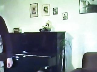 Blonde deutsche GILF mit behaarter Muschi in einem Vintage Sexclip